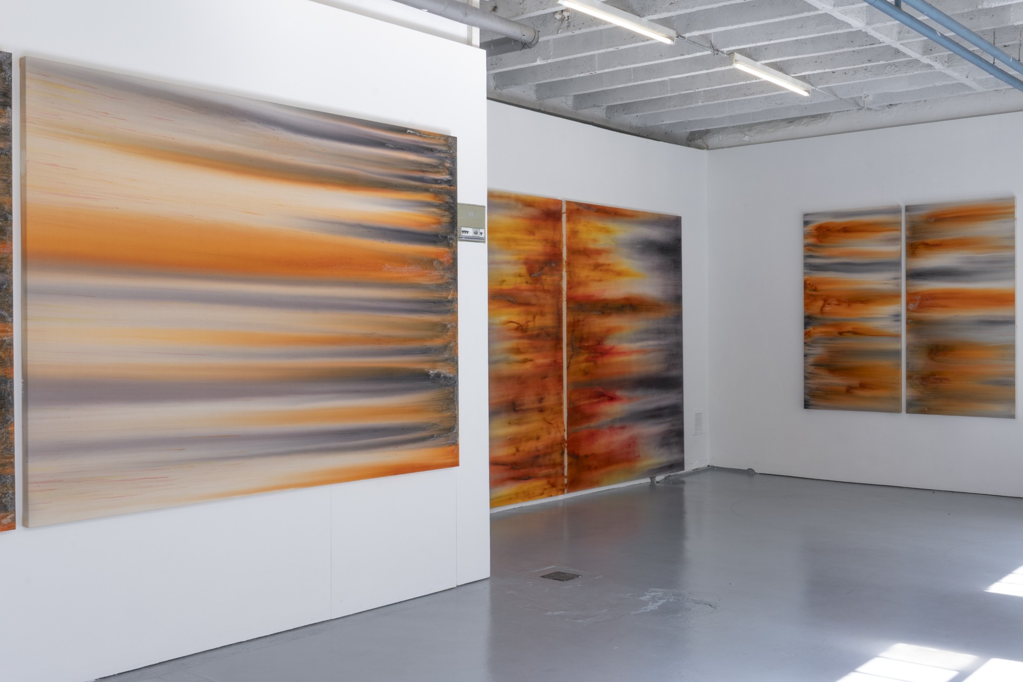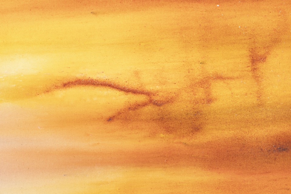 Lorsque l’on voit de près ces tableaux peints, ou plutôt teints et déteints, l’une des premières surprises