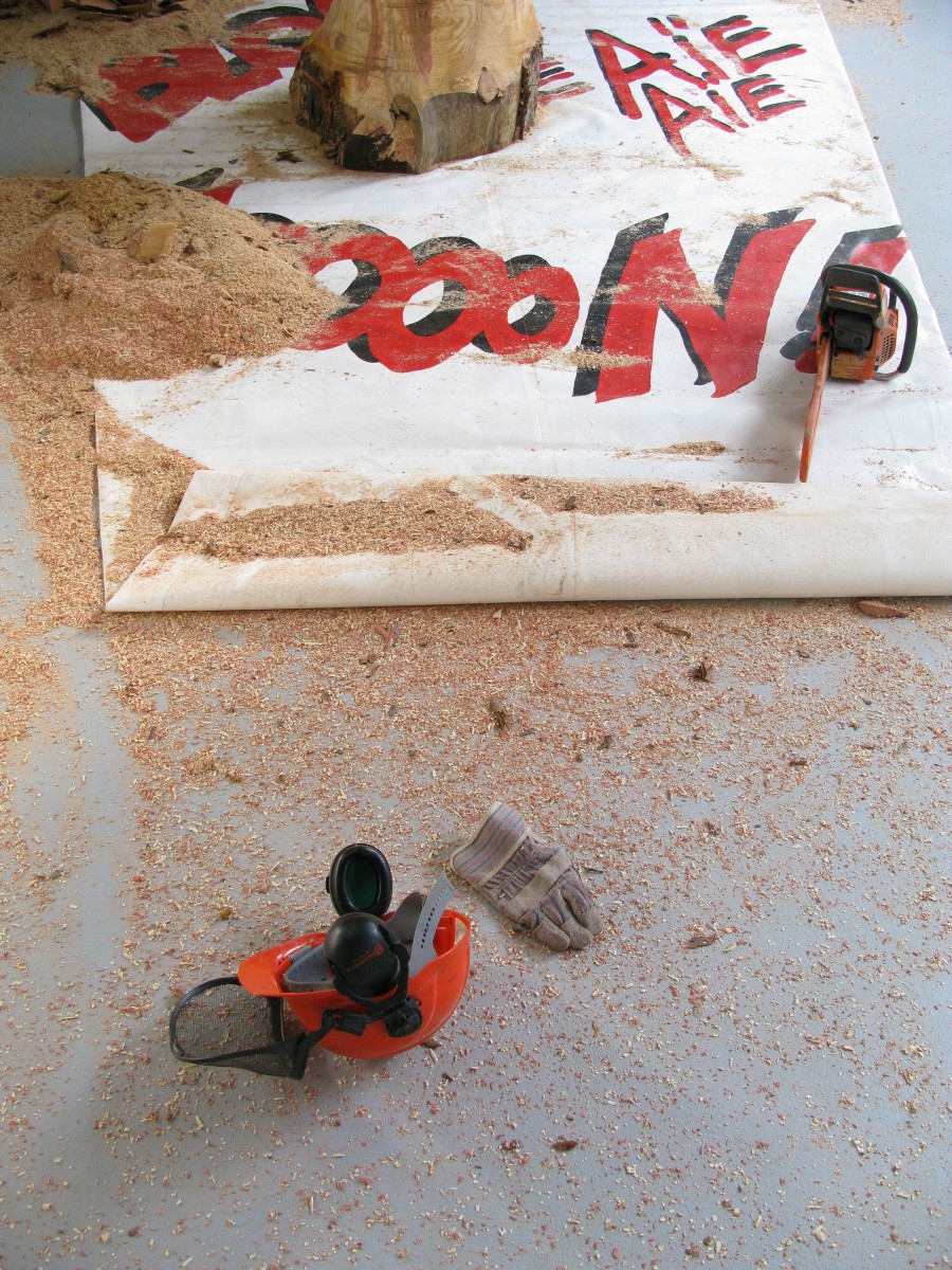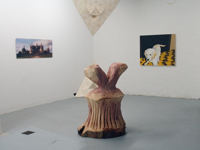 Le dispositif évoque avec humour une certaine lourdeur qui colle de façon stéréotypée aux campagnes bourgeoises d'ici et maintenant. Dans ses sculptures à la tronçonneuse, Claudia Comte a su intégrer les codes de représentations à l'image du monde de Walt Disney qui communiquait par une stratégie visuelle simple et efficace : «les idées, au lieu d'entrer en compétition, se complètent, se prolongent» (in : «Esthétique de la disparition», 1980, Paul Virilio, éd. Balland, p.81), Claudia Comte met donc l'accent à la fois sur les diverses manipulations techniques (peinture acrylique, sculpture à la tronçonneuse, pyrogravure, récupération d'images) que sur la diversité des formes vernaculaires du monde rural actuel.