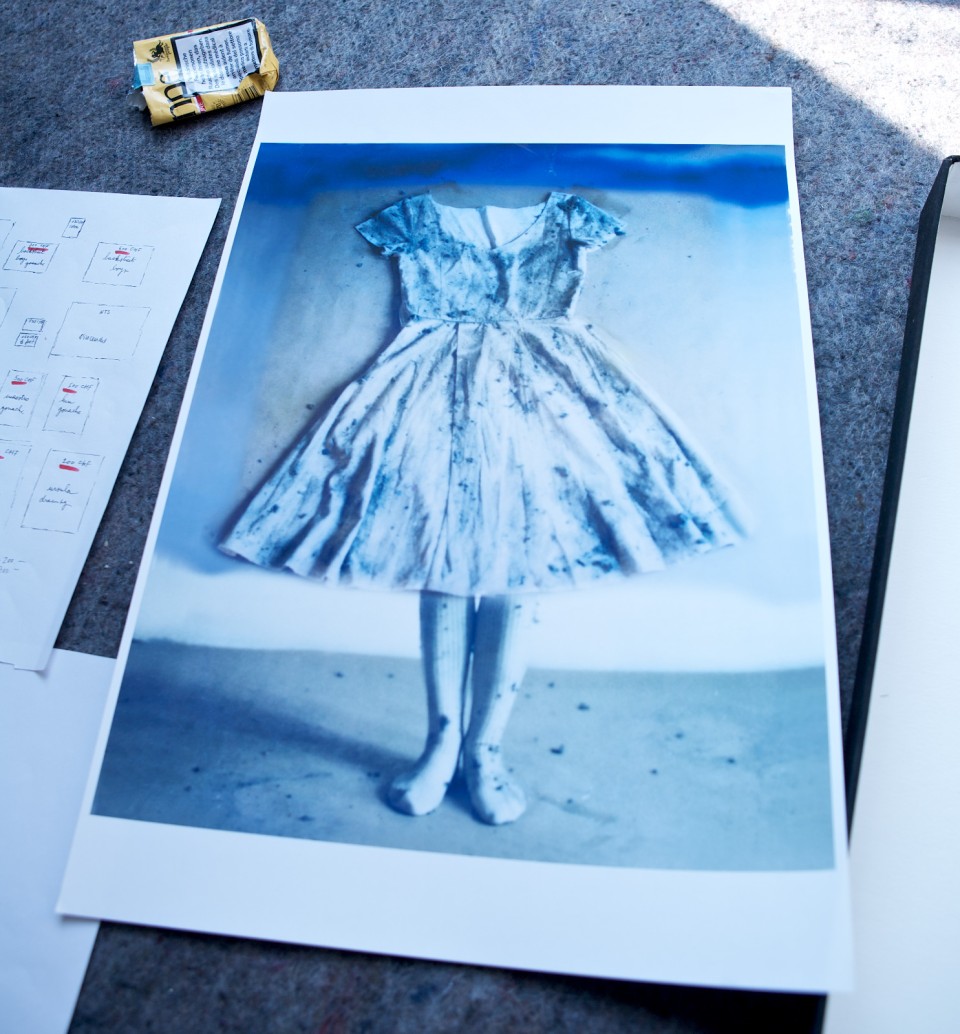 "nos silences égalent notre tendresse tu noirçis des carnets je polaroïd vraiment très couleur tu grattes transferts j'arrache gouache on voit nos proches on apparente nos familles ton trait est aussi fin que ma lumière est bête tu vas droit au coeur je galipette les histoires du trop grand malheur frémissent le retour à la joie est bruyant tapageur si tu dessines oiseau à gros oeil j'entendrai autruche en débardeur quoiqu'il en soit pour toi comme pour moi les filles au bord de l'eau ne montrent pas leurs fesses, nos silences égalent notre tendresse"