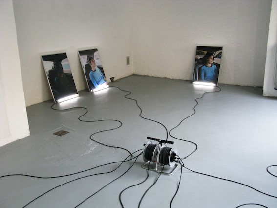 Les voitures sont des cages de Faraday, on utilise aussi ce système pour les micros (afin d' atténuer le souffle), ce sont des enceintes utilisées pour se protéger des nuisances électriques ou électromagnétiques. L'automobile comme un endroit clos, protégé, une capsule dont la bande son a été soigneusement choisie, égoïstement. L'installation de Stéphanie Gygax utilise les fils électriques et la source de lumière comme un élément indissociable de l'image, elles nous propose une succession d'espaces à plusieurs dimensions.