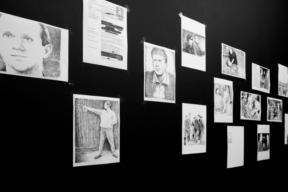 L'exposition de Diego Castro, originaire de Hambourg, traite du caractère autoritaire personnifié par la police en Allemagne. Le dispositif présenté à standard/deluxe est composé d'une série de dessins, d'une peinture murale et d'une installation vidéo et sonore. Castro se penche sur l'aspect historique de la culture policière en Allemagne et cherche à montrer comment le monopole étatique opère dans ses aspects structurels et psychologiques.