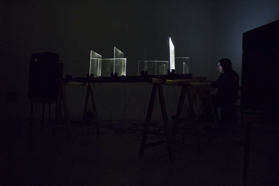 Son et lumière éclatement au sein de structures acryliques et partagent un sentiment d'extrême précision où l'on peut soit entendre la lumière ou voir le son.