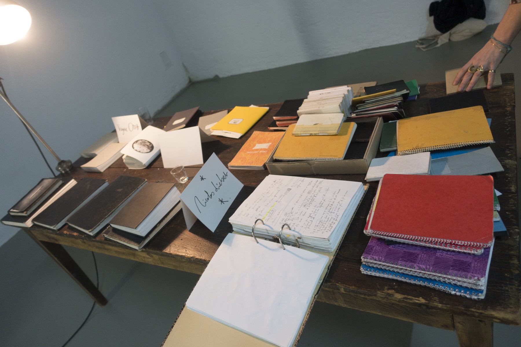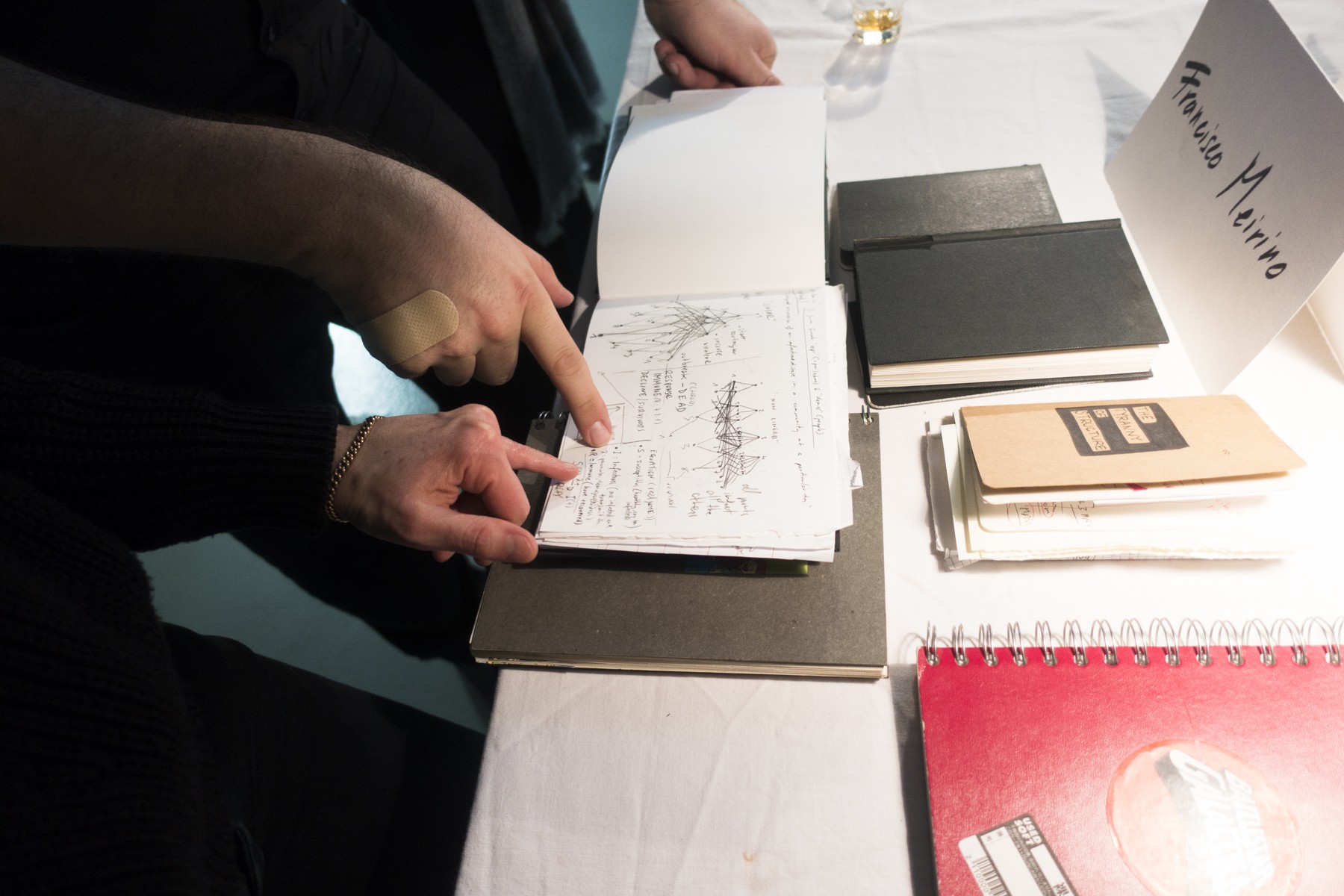 Présentation des carnets de huit artistes, Jean Otth, Andréanne Oberson, Nicolas Lieber, Francisco Meirino, Jean-Marie Reynier, Shannon Guerrico, Daniel Zamarbide et Virginie Otth.