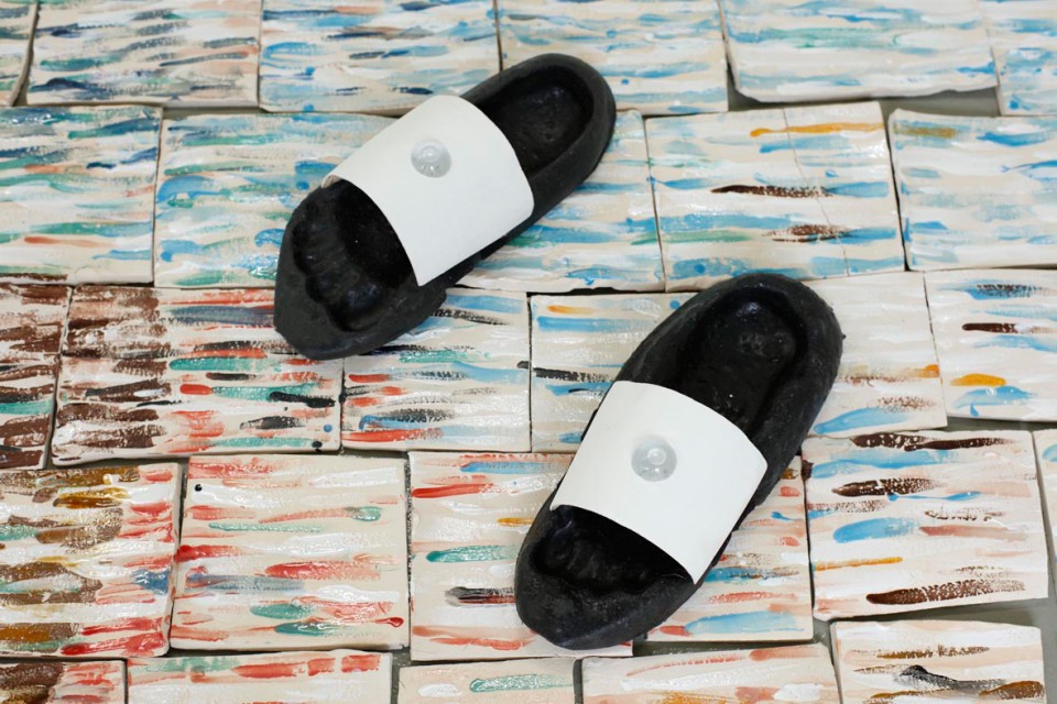 Pour son exposition à standard/deluxe à Lausanne, il a imaginé des accessoires à porter au quotidien, des objets qui inscrivent le corps dans son environnement, des objets qui adhèrent au décor.