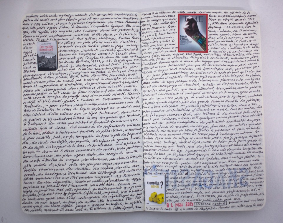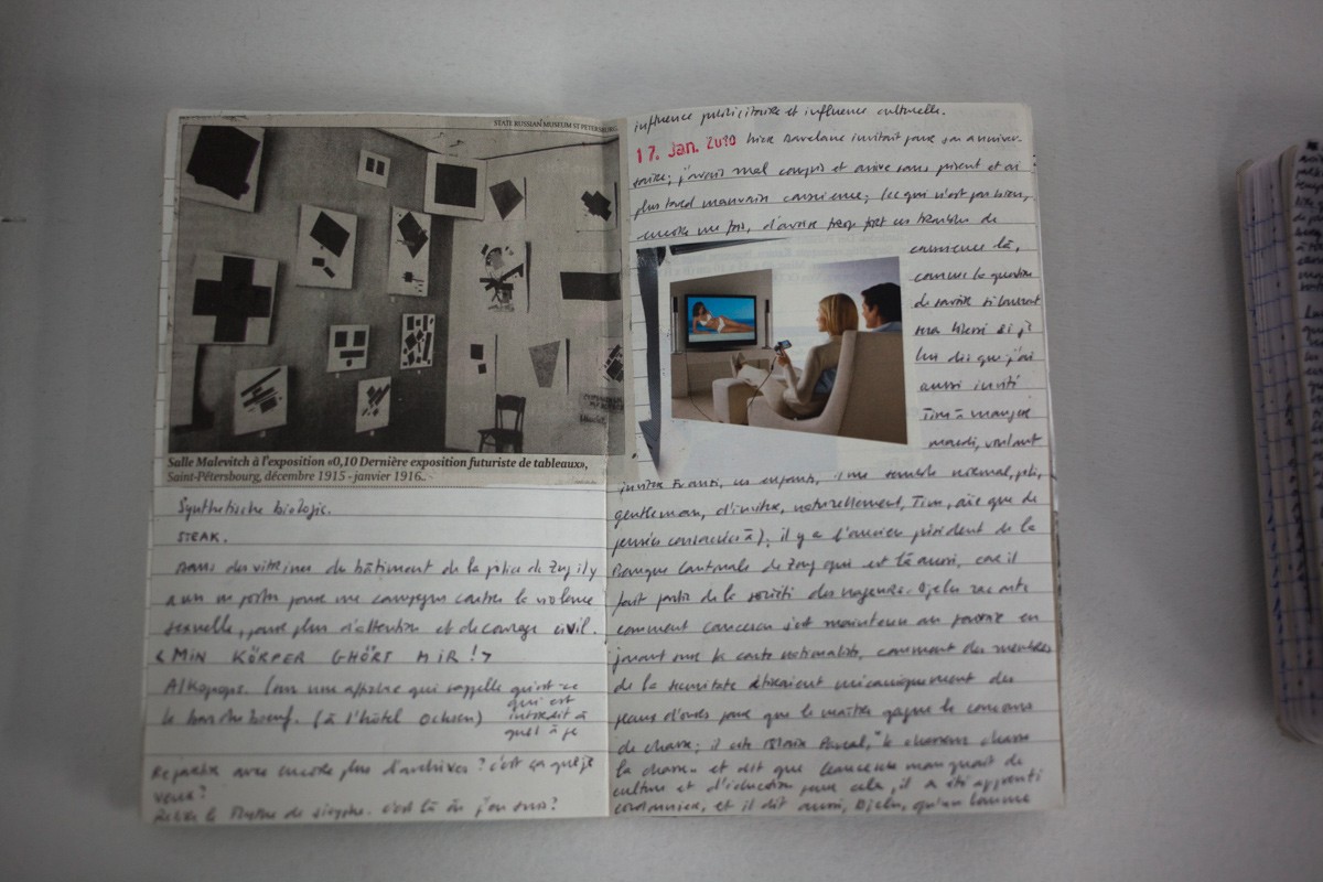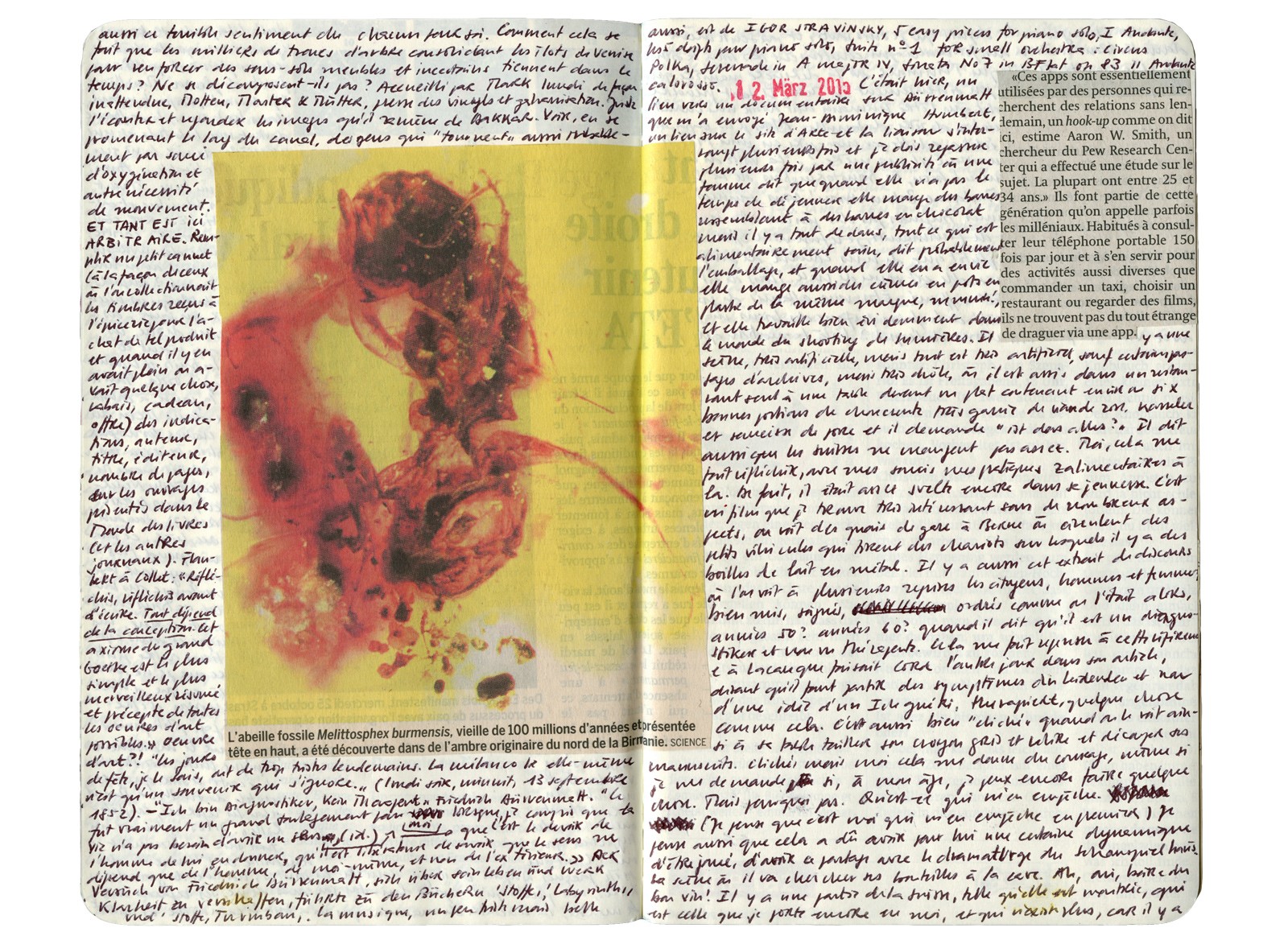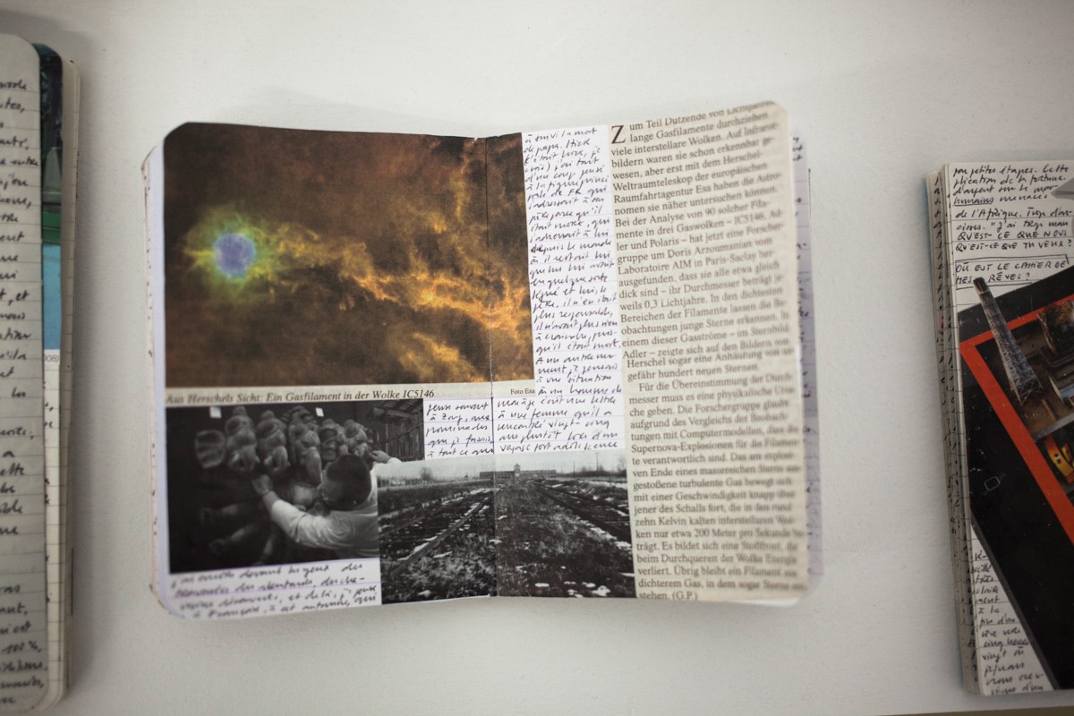 Yves Rosset s’est fait un nom en tant que chroniqueur de la scène artistique berlinoise. Les carnets procèdent par adhérence entre l’écriture et collage d’images.
