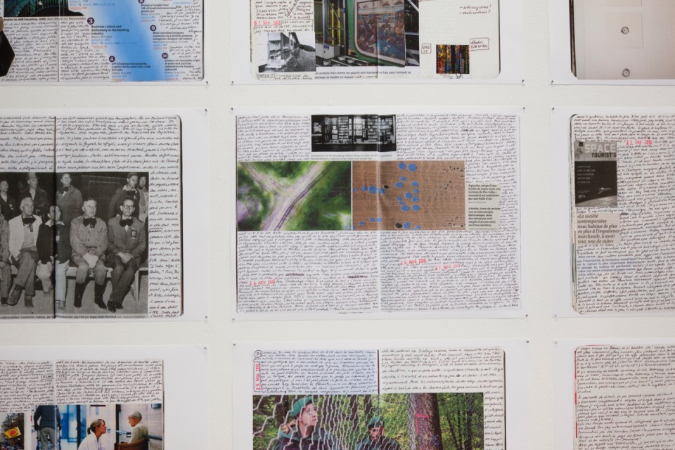 Yves Rosset lie une écriture manuscrite fine et des coupures de presse soigneusement découpées et collées rendant à chaque page une unité plastique autonome. Opérant par une écriture minuscule et méticuleuse, Yves Rosset se sert de petits carnets où il inscrit ses chroniques de manière rigoureuse et intimiste, ses observations et ses interrogations sur le monde. A Standard/deluxe, il exposera des carnets qui représentent un ensemble fini. Les facsimilés accrochés dans l’espace sur les 3 murs nous suggère ce que constitue un livre publié en terme de «tableau», de volume matériel. Influencé en partie par les artistes de la scène berlinoise des années 90 (comme le cinéaste, dessinateur et écrivain Heinz Emigholz), Yves Rosset nous soumet une sorte de lieu d’archive de sa vie quotidienne et nous projette à travers son souci du détail et des accidents volontaires du chroniqueur, dans un monde secret, celui de l’écrivain.