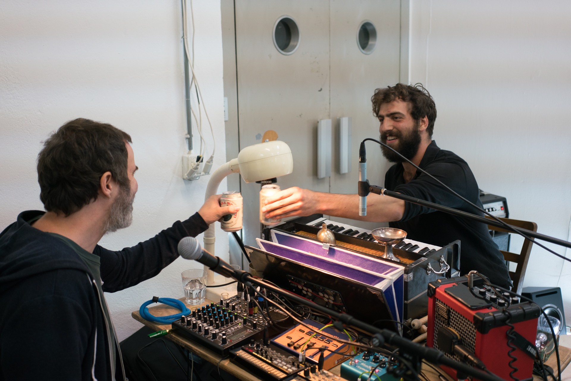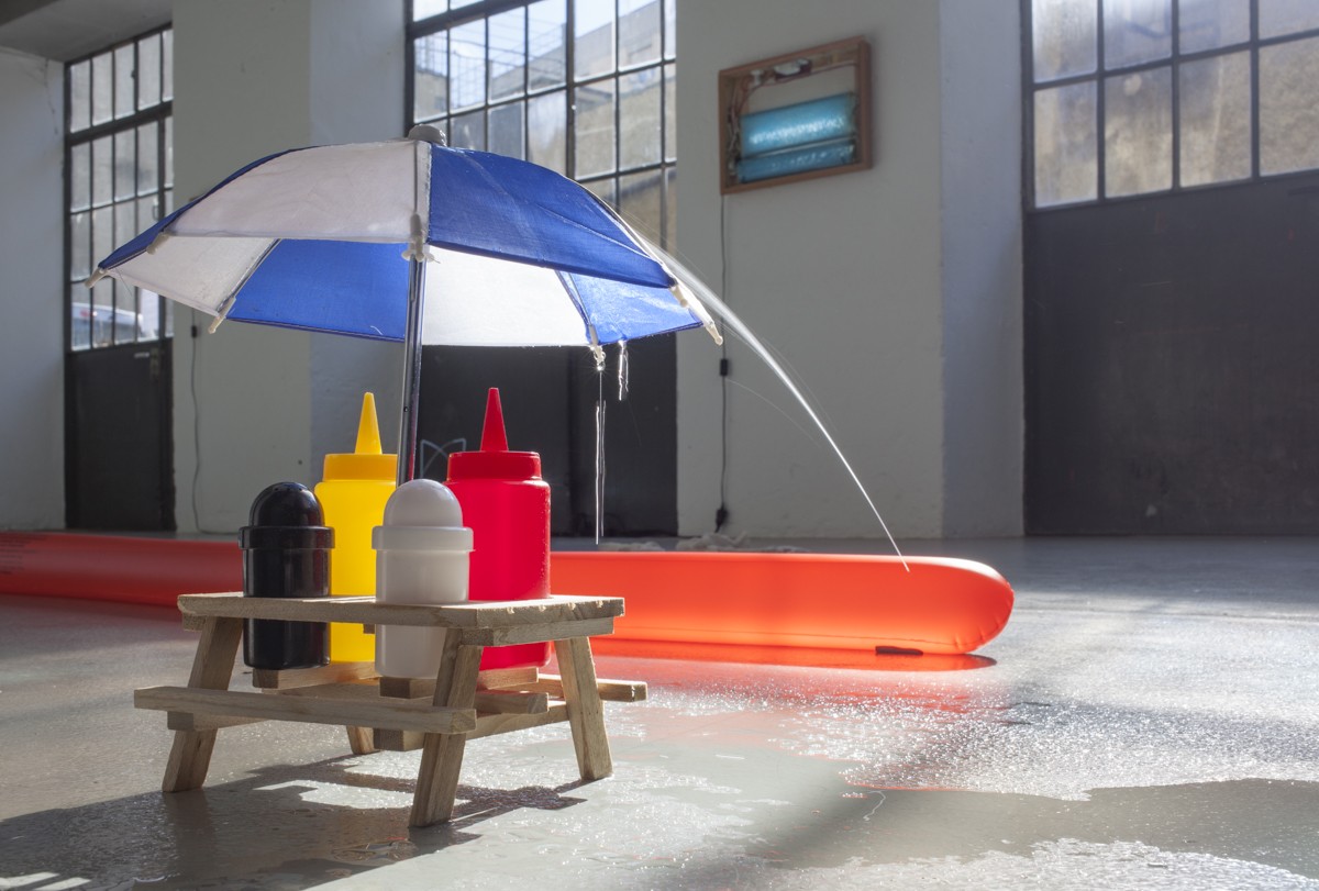 Pause ohne Ende présente “Alpamare”. Matthias Hachen et Mischa Hedinger vivent et travaillent à Zurich. Ils sont lauréats des bourses fédérales en design graphique en 2016. Pause ohne Ende confronte l'artefact à l'humour. Il crée un duel entre le dessin humoristique et le design de l'objet. A standard/deluxe, ils présentent des installations autour de l'eau. Cette eau qui coule sans cesse, et qui jusqu'à nous écœurer inspire la production d'objets gonflables de toutes sortes. A standard/deluxe, ils questionnent ce paradoxe d'avoir envie d'être à la plage partout, même dans l'arc alpin: fontaines, représentations en mouvement de l'eau, objets stéréotypés, l'eau qui coule de façon inusable et permanente. Leur quête se concrétise dans “Alpamare” par une série d'installations en plastique. Le Concert de Louis Schild réserve une teinte de Calypso.