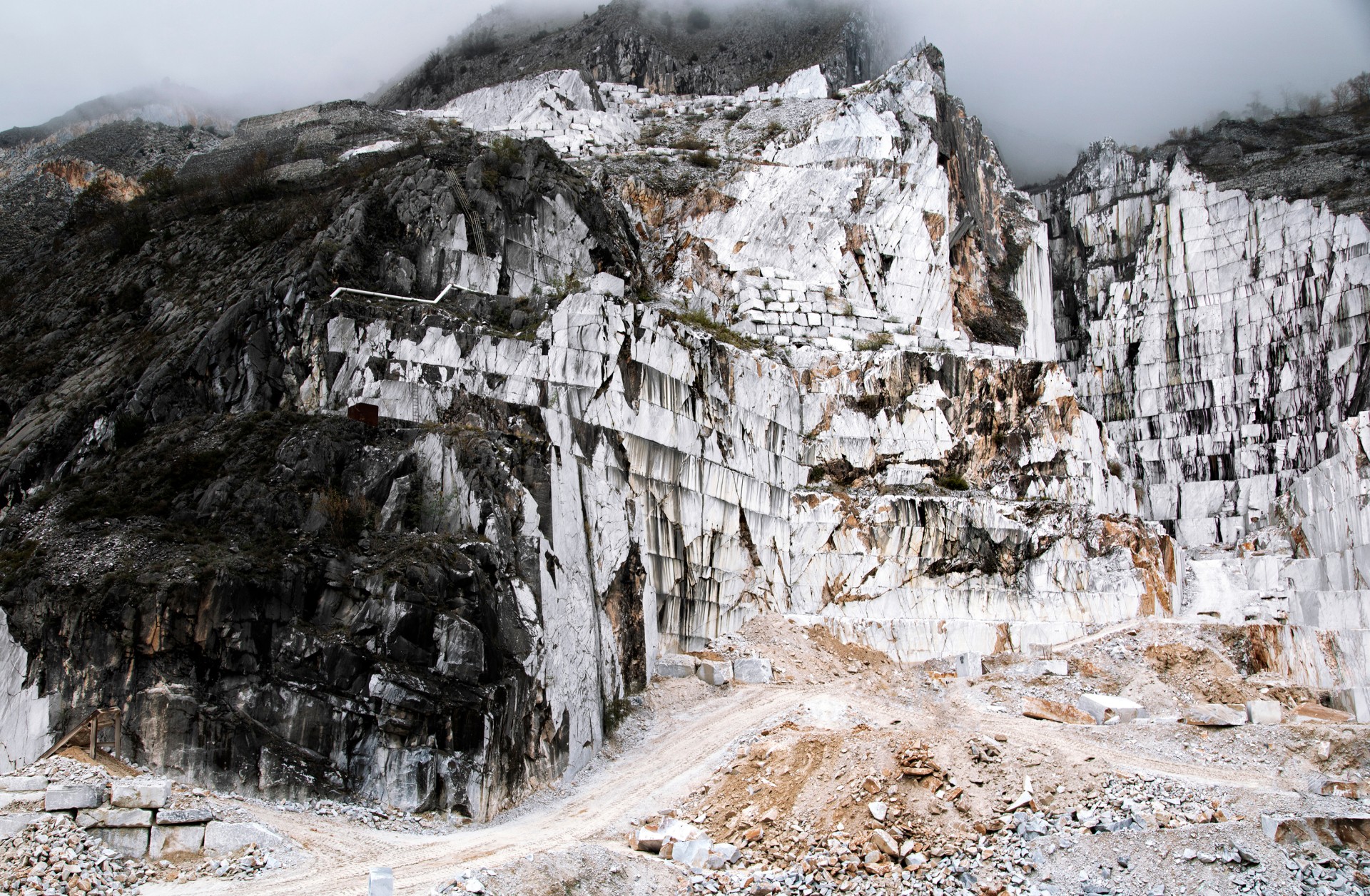 Elle confronte la sculpture au lieu d’extraction de sa matière première, les carrières de Carrare devenues sinistrées par l’exploitation sauvage actuelle. Le marbre, réduit en poudre pour les profits de l’industrie contemporaine, permet de blanchir le sucre, le papier et devient un composant pour de nombreux cosmétiques et dentifrices, entre autres. Aujourd’hui, 75% du marbre extrait est transformé en poudre.