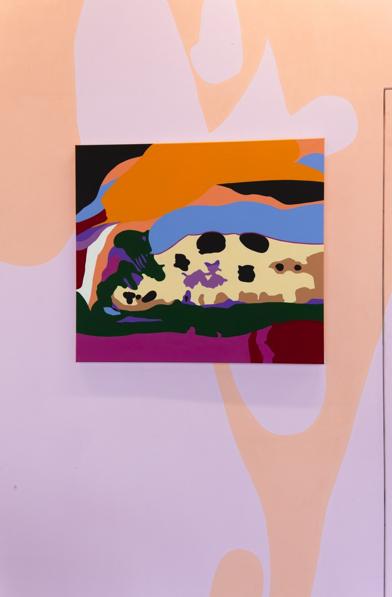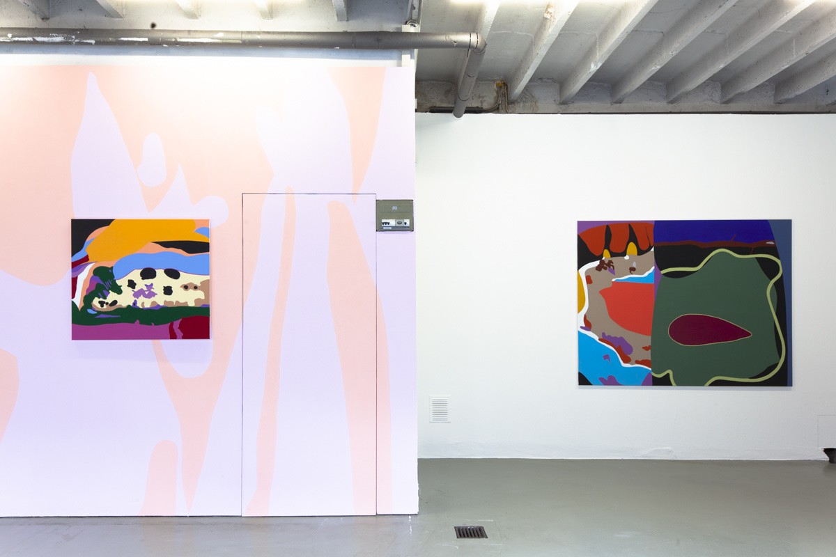 Mes peintures sont des paysages mentaux dont les formes peuvent évoquer aussi bien les courbes d’un corps que des figures géométriques et organiques anonymes. Les formes, tracées préalablement au crayon sur la toile, restent ambiguës. L’imbrication de toutes ces formes abstraites prend la direction d’une certaine figuration qui se veut fuyante, de sorte qu’il devient difficile de la nommer.