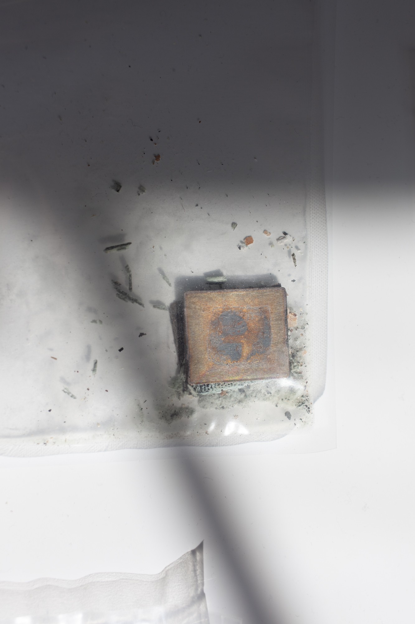 Ce projet porte sur l’archivage des images et son implication dans la création des souvenirs, à travers une approche technique et intime. Reliant ses trois activités professionnelles que sont l’informatique, la photographie et la chimie, Stéphane Winter explore la manière dont la conservation d’iconographies participe à l’élaboration de notre mémoire individuelle et collective. Il propose un questionnement d’ordre à la fois personnel et patrimonial: comment déterminer la substance/la matérialité des images et les supports permettant leur sauvegarde, tout comme ce qui les rend précieuses à nos yeux? Pour tenter d’apporter quelques éléments de réponse, l’artiste a sondé la notion de «données brutes» en brûlant et en transformant chimiquement des photographies et des supports photographiques reproductibles. Les objets uniques issus de ce processus sont dès lors reliés de manière émotionnelle aux éléments disparus et se trouvent prompts à être conservés, montrés, et pourquoi pas à nouveau transformés.