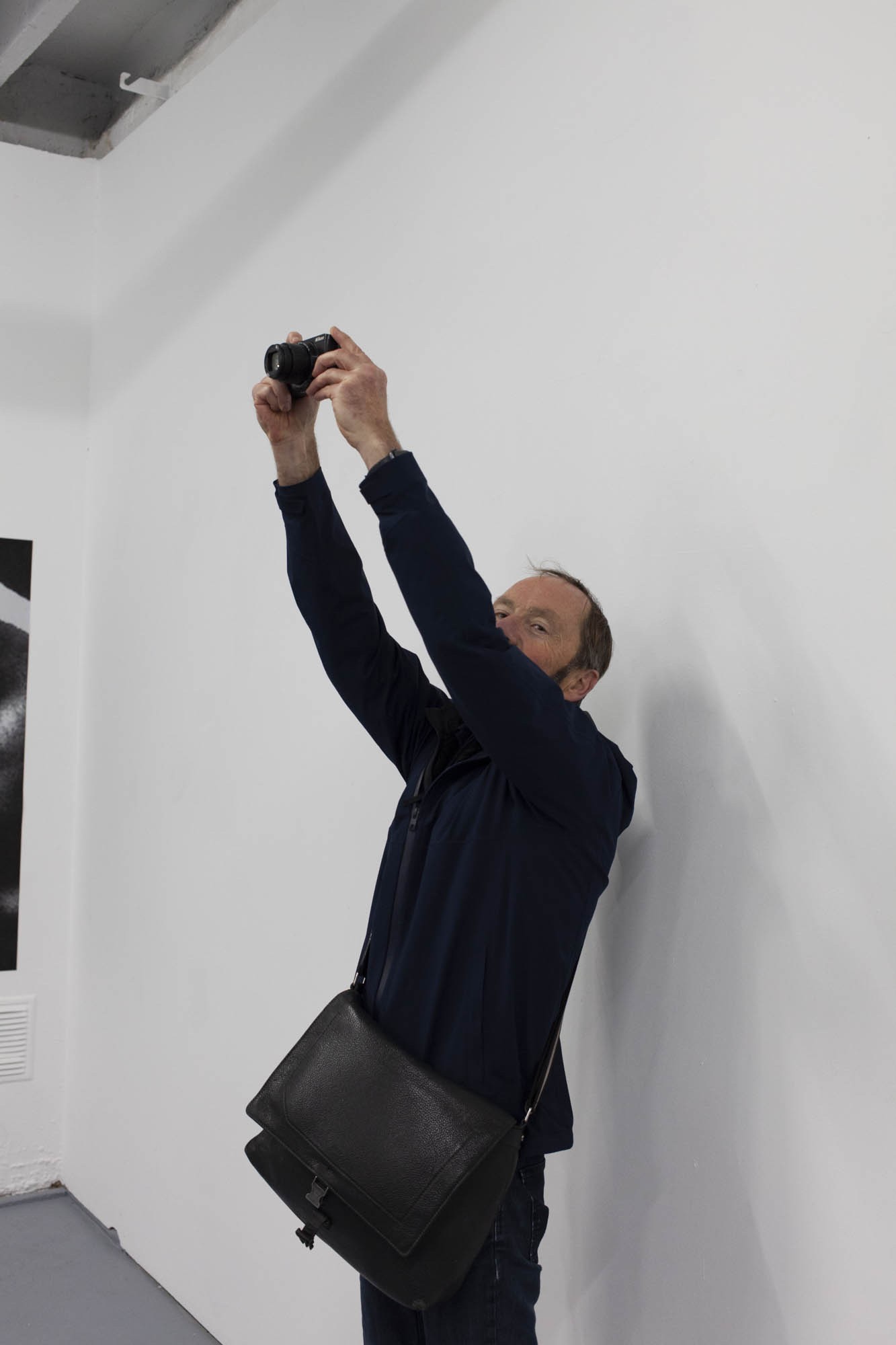 Au mur, des grandes impressions sont collées les unes aux autres. Ce sont des captures d’écrans, issues de différents films, devenus méconnaissables. Seuls les arrière-fonds des plans ont été gardé, réunissant ainsi des sources éclectiques au même niveau de lecture. Elles partagent l’esthétique du flou, permettant leur rencontre.