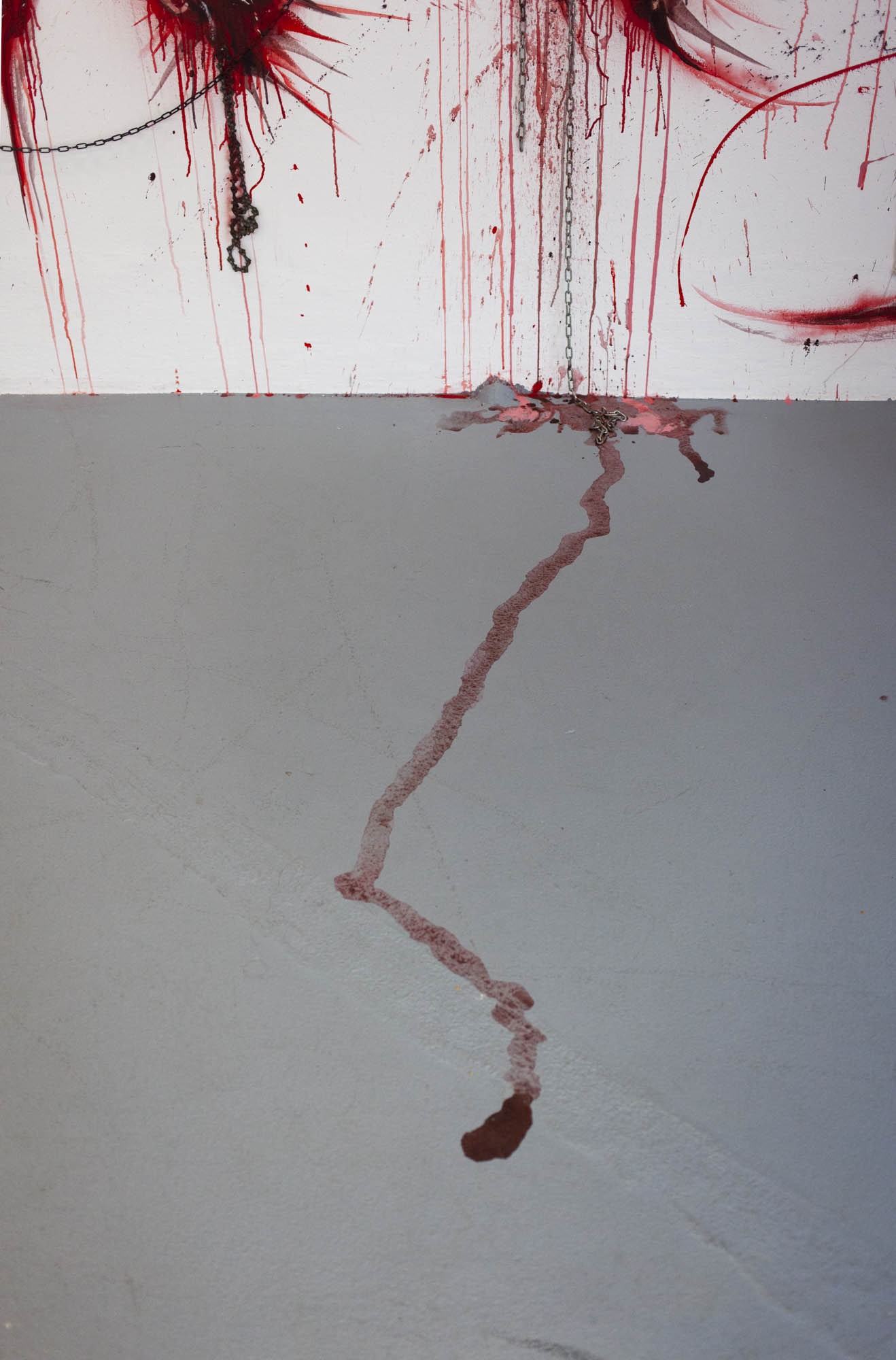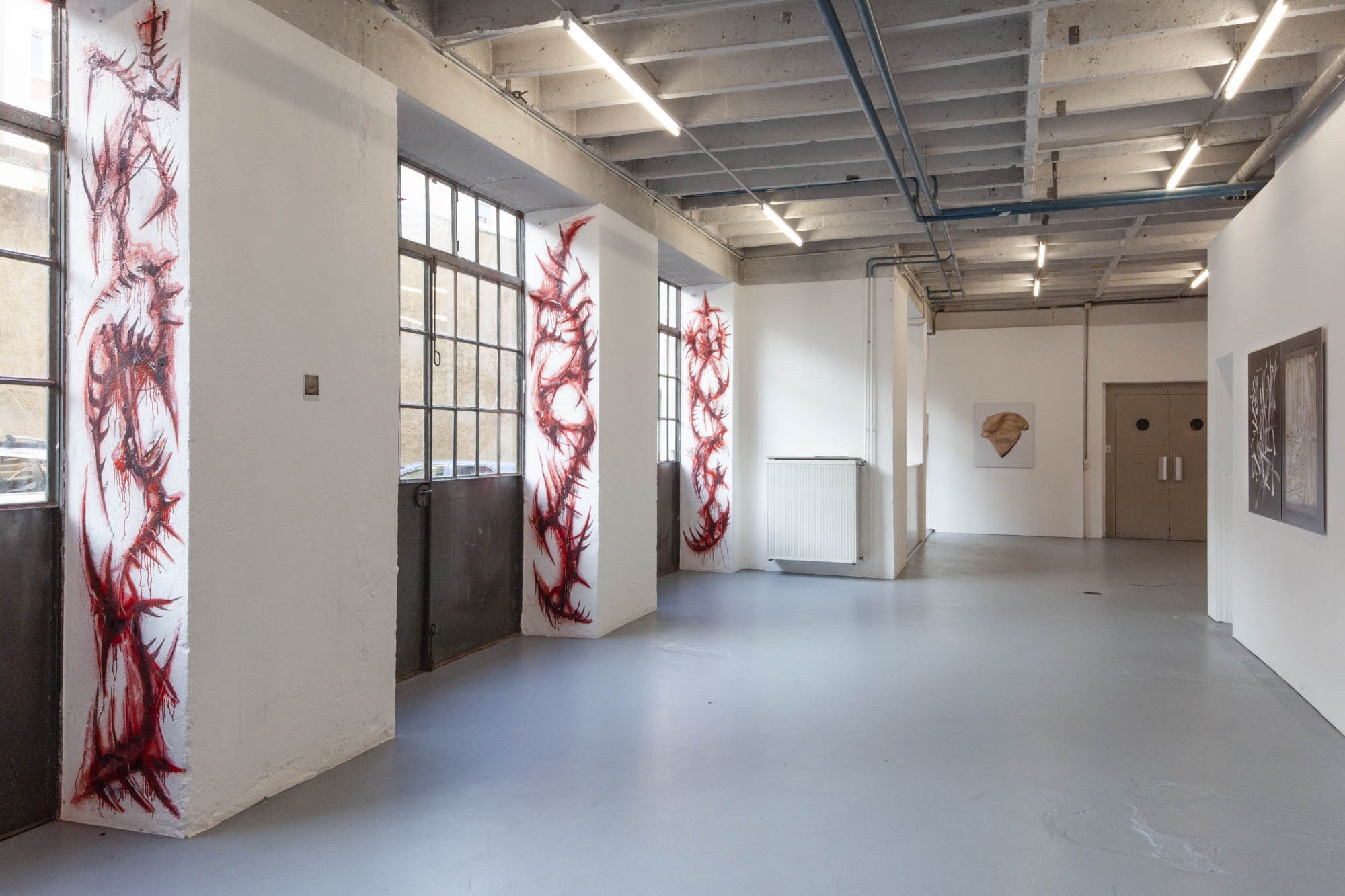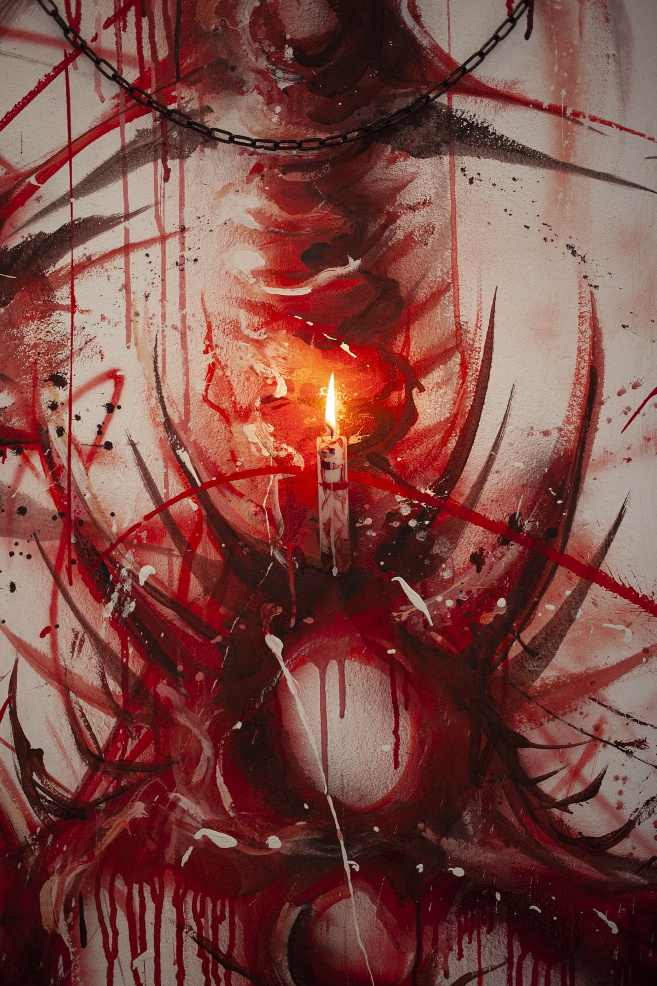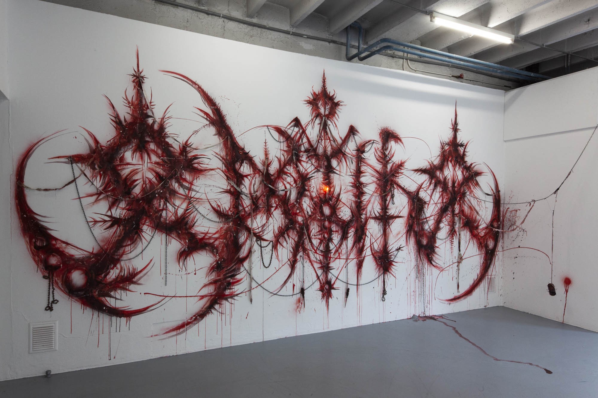 Sabrina Biro et ᛟᛞᛁᚾᛟ ont réalisé spécialement pour cette exposition une série de photographies, des sculptures et des peintures murales. Brutales et à la fois séduisantes, les oeuvres de ces deux artistes interrogent la fascination que nous pouvons entretenir avec la mort et ses représentations. Les vanités dépeintes dans l’histoire de l’art occidentales, à savoir des images représentants des ossements ou tout objets ayant un lien direct avec la mort, possédaient différentes significations mais convergeaient sur la même idée. Peu importe notre classe sociale, savoir, identité ou richesses, nous finirons tous·x·tes en poussière. Notre relation à la mort s’est développée ces dernières décennies avec le cinéma et les séries. D’une réflexion philosophique, notre oeil s’est orienté vers un attrait pour l’organique, le sensationnel. Sabrina Biro et ᛟᛞᛁᚾᛟ illustrent ce glissement sémantique et esthétique chacun·e à leur manière. Du Memento mori au gore, At the heart of it all propose au public une expérience sensorielle.