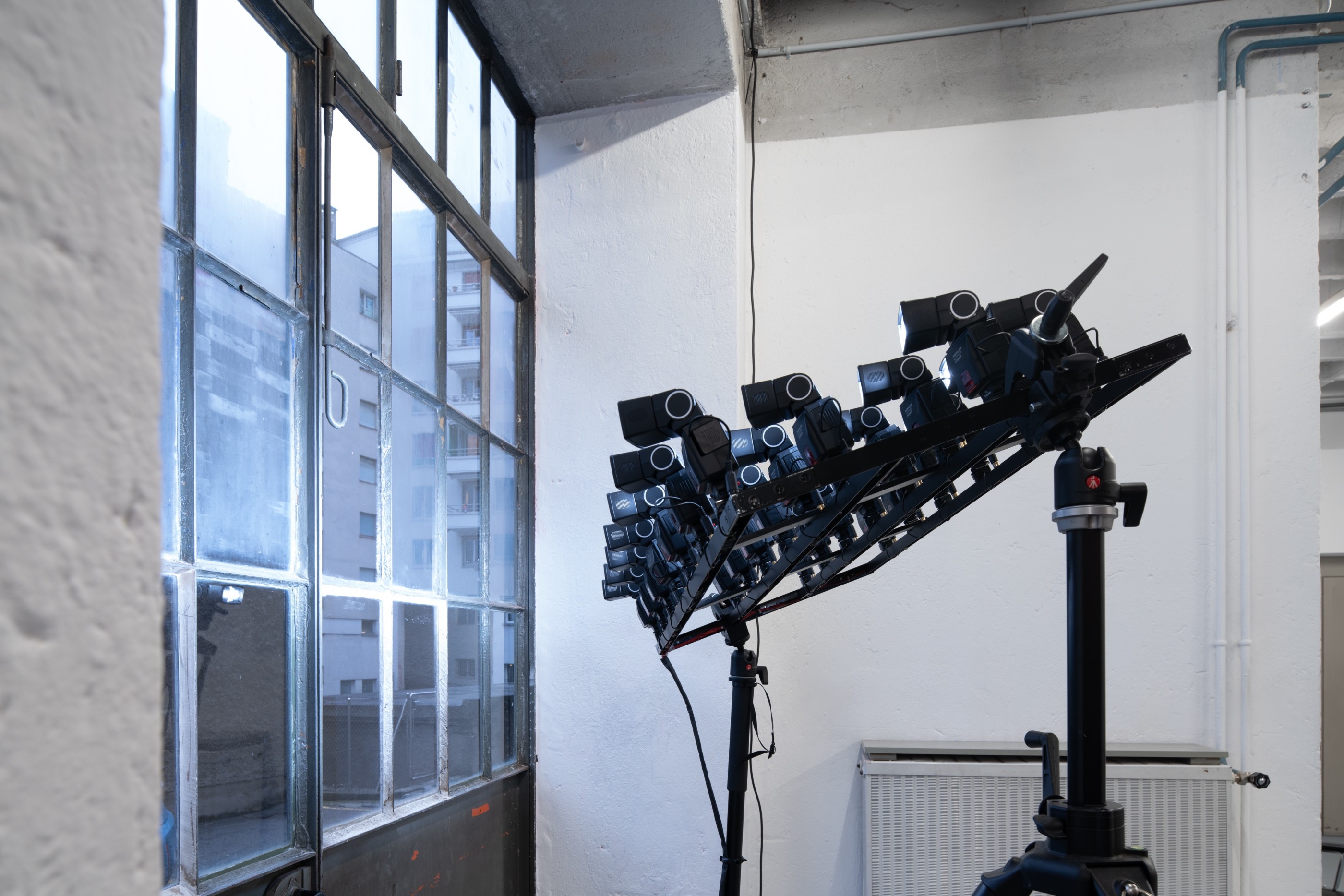 Dans cette exposition, Vesko Gösel utilise des outils photographiques comme sujets: Un réflecteur, une bannière ou les flashs eux-mêmes deviennent des sculptures. Des objets à voir, plutôt qu’à utiliser. Vesko joue avec les arguments et les codes marketing des entreprises d’éclairage de studio comme Multiblitz ou Broncolor.