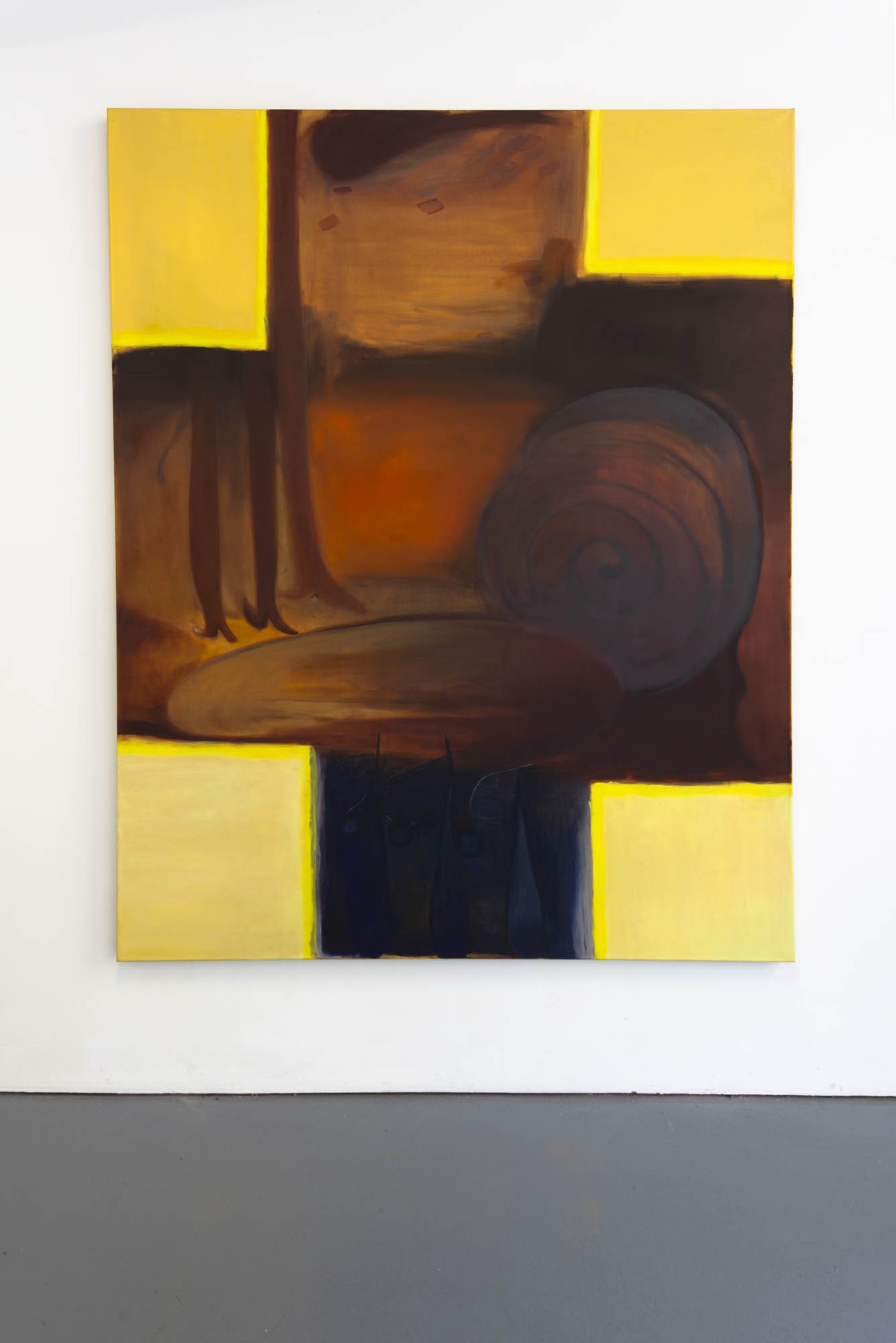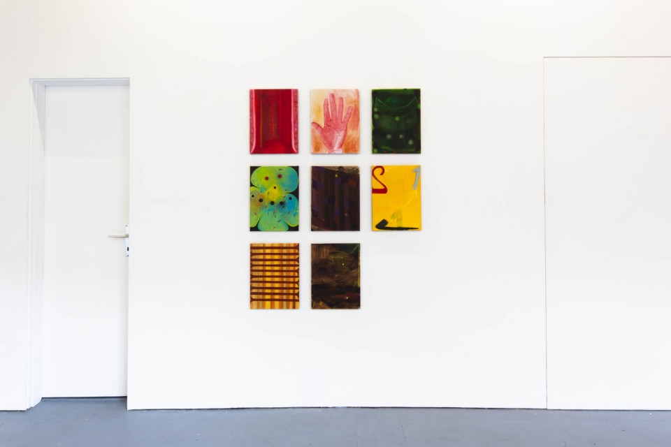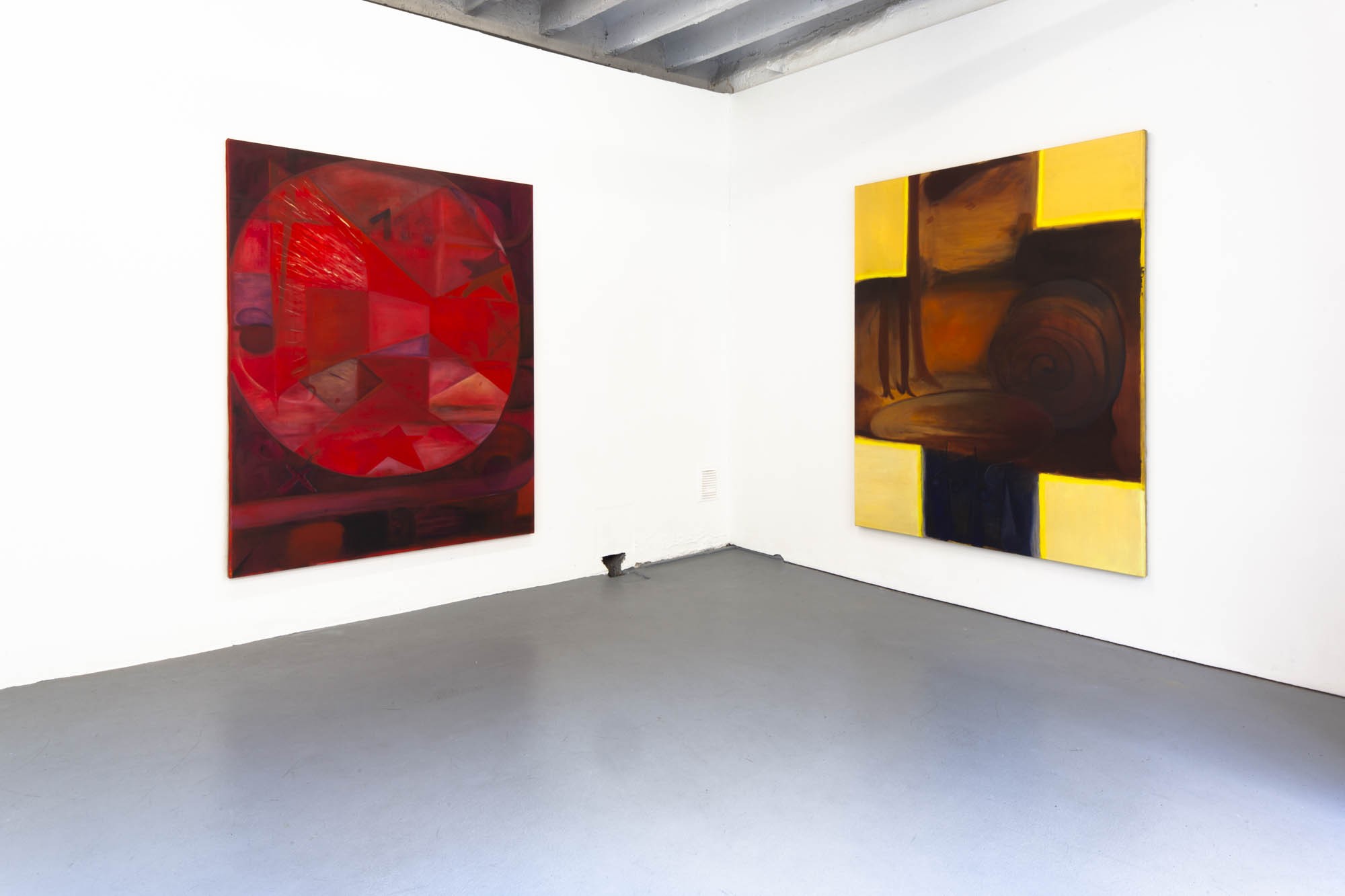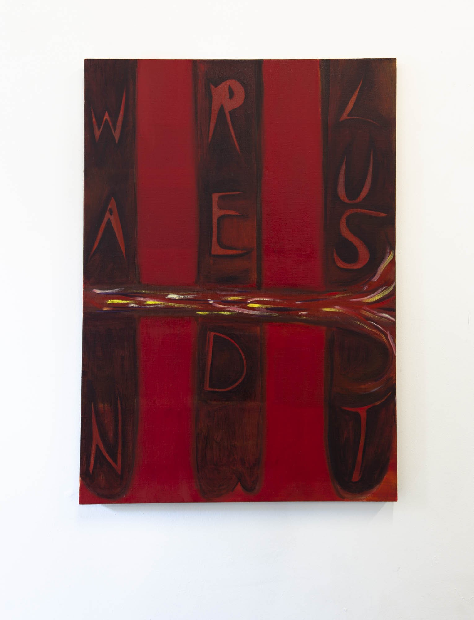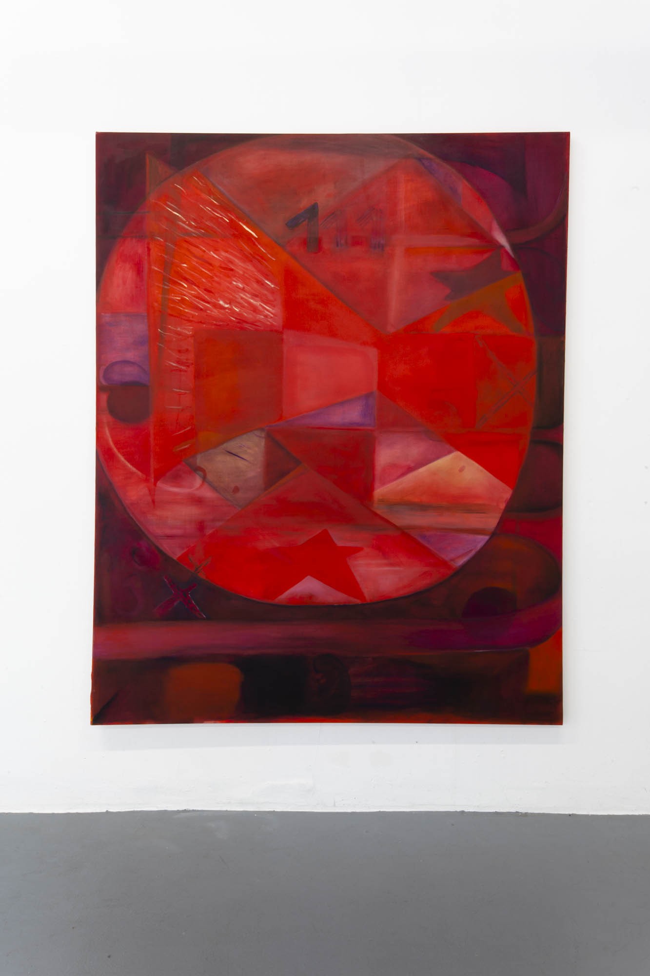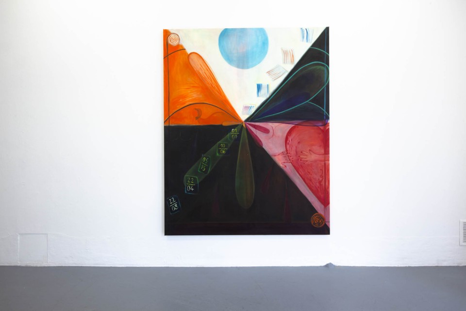 C'est autour d'un récent séjour à la Fundaziun Nairs à Scuol que Leah Nehmerta réalisé une série d'oeuvres introspectives abordées par le prisme de lamarche dans la nature.Nichée dans une vallée de basse-Engandine dans les Grisons, cette résidenceaccueille des artistes naturellement amenés à se déconnecter de leurmilieu de vie et de travail habituels — le plus souvent urbains —tout en s'astreignantà une vie communautaire au sein d'une cohorte d'artistes venus detoute la Suisse.C'est ainsi que durant trois mois loin de Bâle, où Leah Nehmert vit et travaille,elle s'est engagée dans des cycles de production cadencés par de longuesmarches méditatives pendant lesquelles l!artiste a porté une attention touteparticulière à la nature environnante, et s!est attelée à tenter de capturer desphénomènes naturels d!habitude imperceptibles à l’oeil ingénu. En effet, c!estpar la marche — acte banal et le plus souvent utilitaire — que de nombreuxintellectuels et artistes avant Nehmert ont su se (re)trouver et, par là même,accéder à une inspiration renouvelée.Avant son départ, inspirée notamment par L'Art de Marcher de l!autrice américaineRebecca Solnit, qui considère la marche ou l!errance comme moteursde libération métaphysique, Leah Nehmert, a produit des peintures qui traduisentl’attente, ou la préparation précédant son séjour. Ainsi, certainesoeuvres de l’exposition offrent, comme un avant-propos, des visions fantasmées,presque languissantes, de cette immersion à venir.Leah Nehmert est artiste, et aspire, depuis plusieurs années déjà, à mettreen place une forme de peinture capable de traduire les émotions, le ressenti,et le passage du temps, sans pour autant tomber dans les affres de l!hyperréalisme,qu!elle considère trop prosaïque. Peu intéressée par les débats liésau réalisme de la représentation picturale, son travail repose et émergenéanmoins d!une réflexion murie autour du médium et de sa dimension historique.Cette préoccupation est palpable dans Wanderlust, qui regroupe neufnouvelles oeuvres qui, bien qu’émanant du séjour grison de l!artiste, portentses thématiques de prédilection, comme la pratique diaristique et autobiographique,ou encore sa passion pour la musique et les instruments de musique,à l!image de April 2023, March 2023, June 2023, August 2023, February2023, October 2023 et September 2023 qui, comme leurs titres l!indiquent,consignent sur la toile, plutôt que n’écrivent dans un journal, les impressionsd!un mois.Cette pratique diariste abstraite repose autant sur le potentiel symbolique,mais aussi la qualité intrinsèque des couleurs, que l!agencement géométriquedes formes et l’équilibre que celui-ci peut achever.La recherche d’équilibre est aussi au coeur de Selfportrait, 2023 qui, à l!imaged’une montre ou de la roue de la fortune dans le tarot, évoque différents aspectsliés au passé, présent et futur de l!artiste. On décèle ainsi l!amitié,symbolisée par les deux mains et le coeur, des dates passées marquantes ouencore le quotidien incarné par un escargot orange.Comme pour renforcer leur signification au-delà du sens commun, certainsmotifs du lexique de Leah Nehmert sont parfois réitérés. C!est le cas dansCrossing paths, qui peut s!aborder par deux perspectives : celle du plan représentantl!intersection de deux chemins ou une croix, ou celle d!une élévationdans laquelle déambulerait un escargot enchrysalidé, sorte de"#corpslarve”,qui, selon l’artiste esquisse la notion de destinée. Le chiffre 1 qui apparaîtdans Wanderlust, comme symbole de l!unicité et de l!individualité del’être, se dessine aussi dans March 2023, pour figurer le début d!une séquence(et donc d!une temporalité), mais aussi la métamorphose, thème omniprésentdans l!exposition.De plus, ce tableau éponyme au titre de l!exposition fait aussi office d!emblèmed!une nouvelle étape créatrice dans la vie de l!artiste. Elle fait partied!une série de trois peintures dont le format correspond à la taille du lit del!artiste, et, à l!instar de toutes les oeuvres visibles dans l!exposition, témoigned!une volonté d’élucider la richesse de l!imagination intérieure en abordant lapeinture comme ultime vecteur de l!expression de l!inconscient.