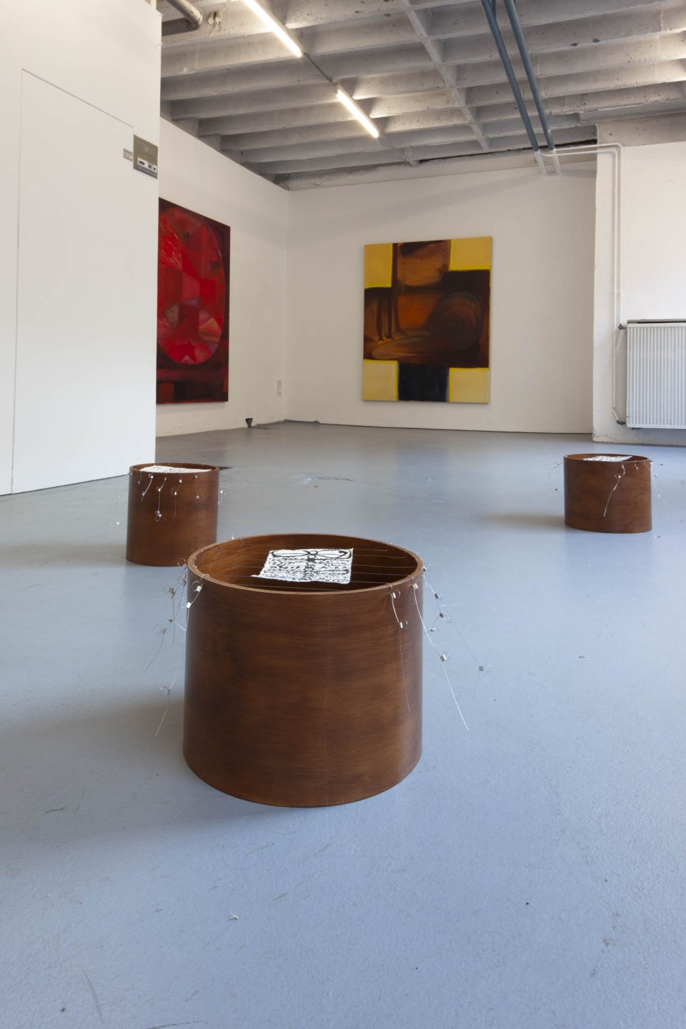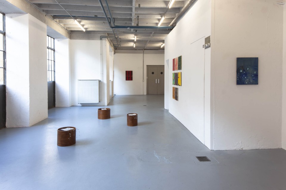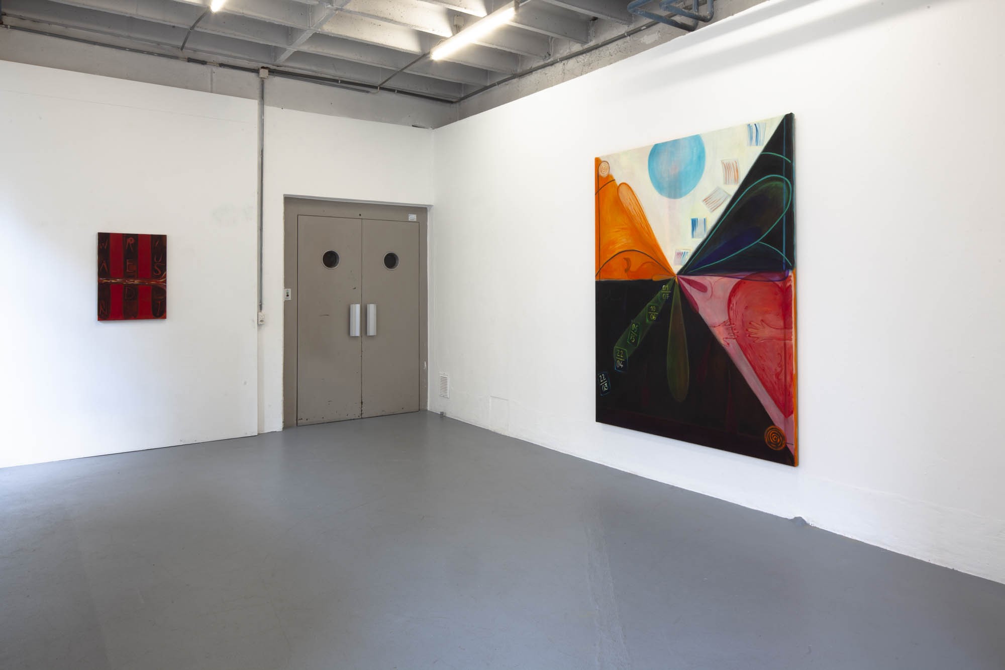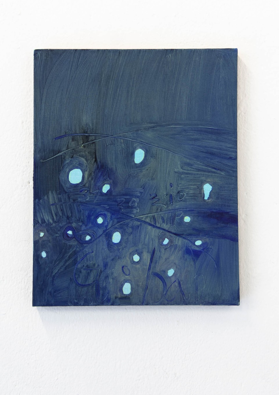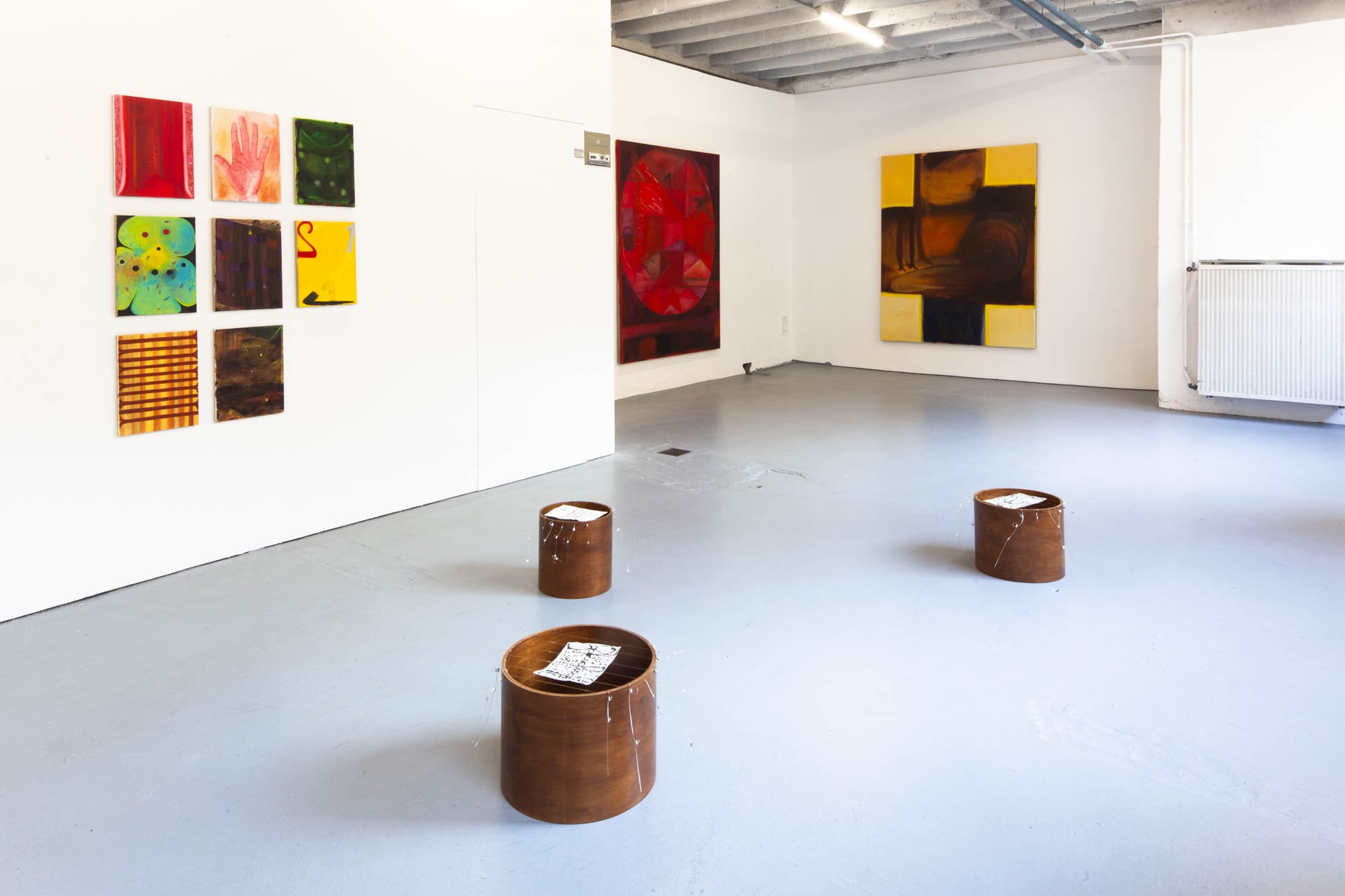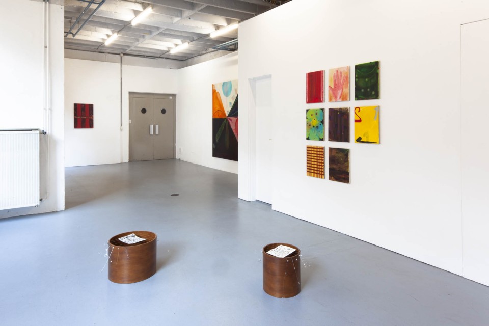 C'est autour d'un récent séjour à la Fundaziun Nairs à Scuol que Leah Nehmerta réalisé une série d'oeuvres introspectives abordées par le prisme de lamarche dans la nature.Nichée dans une vallée de basse-Engandine dans les Grisons, cette résidenceaccueille des artistes naturellement amenés à se déconnecter de leurmilieu de vie et de travail habituels — le plus souvent urbains —tout en s'astreignantà une vie communautaire au sein d'une cohorte d'artistes venus detoute la Suisse.C'est ainsi que durant trois mois loin de Bâle, où Leah Nehmert vit et travaille,elle s'est engagée dans des cycles de production cadencés par de longuesmarches méditatives pendant lesquelles l!artiste a porté une attention touteparticulière à la nature environnante, et s!est attelée à tenter de capturer desphénomènes naturels d!habitude imperceptibles à l’oeil ingénu. En effet, c!estpar la marche — acte banal et le plus souvent utilitaire — que de nombreuxintellectuels et artistes avant Nehmert ont su se (re)trouver et, par là même,accéder à une inspiration renouvelée.Avant son départ, inspirée notamment par L'Art de Marcher de l!autrice américaineRebecca Solnit, qui considère la marche ou l!errance comme moteursde libération métaphysique, Leah Nehmert, a produit des peintures qui traduisentl’attente, ou la préparation précédant son séjour. Ainsi, certainesoeuvres de l’exposition offrent, comme un avant-propos, des visions fantasmées,presque languissantes, de cette immersion à venir.Leah Nehmert est artiste, et aspire, depuis plusieurs années déjà, à mettreen place une forme de peinture capable de traduire les émotions, le ressenti,et le passage du temps, sans pour autant tomber dans les affres de l!hyperréalisme,qu!elle considère trop prosaïque. Peu intéressée par les débats liésau réalisme de la représentation picturale, son travail repose et émergenéanmoins d!une réflexion murie autour du médium et de sa dimension historique.Cette préoccupation est palpable dans Wanderlust, qui regroupe neufnouvelles oeuvres qui, bien qu’émanant du séjour grison de l!artiste, portentses thématiques de prédilection, comme la pratique diaristique et autobiographique,ou encore sa passion pour la musique et les instruments de musique,à l!image de April 2023, March 2023, June 2023, August 2023, February2023, October 2023 et September 2023 qui, comme leurs titres l!indiquent,consignent sur la toile, plutôt que n’écrivent dans un journal, les impressionsd!un mois.Cette pratique diariste abstraite repose autant sur le potentiel symbolique,mais aussi la qualité intrinsèque des couleurs, que l!agencement géométriquedes formes et l’équilibre que celui-ci peut achever.La recherche d’équilibre est aussi au coeur de Selfportrait, 2023 qui, à l!imaged’une montre ou de la roue de la fortune dans le tarot, évoque différents aspectsliés au passé, présent et futur de l!artiste. On décèle ainsi l!amitié,symbolisée par les deux mains et le coeur, des dates passées marquantes ouencore le quotidien incarné par un escargot orange.Comme pour renforcer leur signification au-delà du sens commun, certainsmotifs du lexique de Leah Nehmert sont parfois réitérés. C!est le cas dansCrossing paths, qui peut s!aborder par deux perspectives : celle du plan représentantl!intersection de deux chemins ou une croix, ou celle d!une élévationdans laquelle déambulerait un escargot enchrysalidé, sorte de"#corpslarve”,qui, selon l’artiste esquisse la notion de destinée. Le chiffre 1 qui apparaîtdans Wanderlust, comme symbole de l!unicité et de l!individualité del’être, se dessine aussi dans March 2023, pour figurer le début d!une séquence(et donc d!une temporalité), mais aussi la métamorphose, thème omniprésentdans l!exposition.De plus, ce tableau éponyme au titre de l!exposition fait aussi office d!emblèmed!une nouvelle étape créatrice dans la vie de l!artiste. Elle fait partied!une série de trois peintures dont le format correspond à la taille du lit del!artiste, et, à l!instar de toutes les oeuvres visibles dans l!exposition, témoigned!une volonté d’élucider la richesse de l!imagination intérieure en abordant lapeinture comme ultime vecteur de l!expression de l!inconscient.