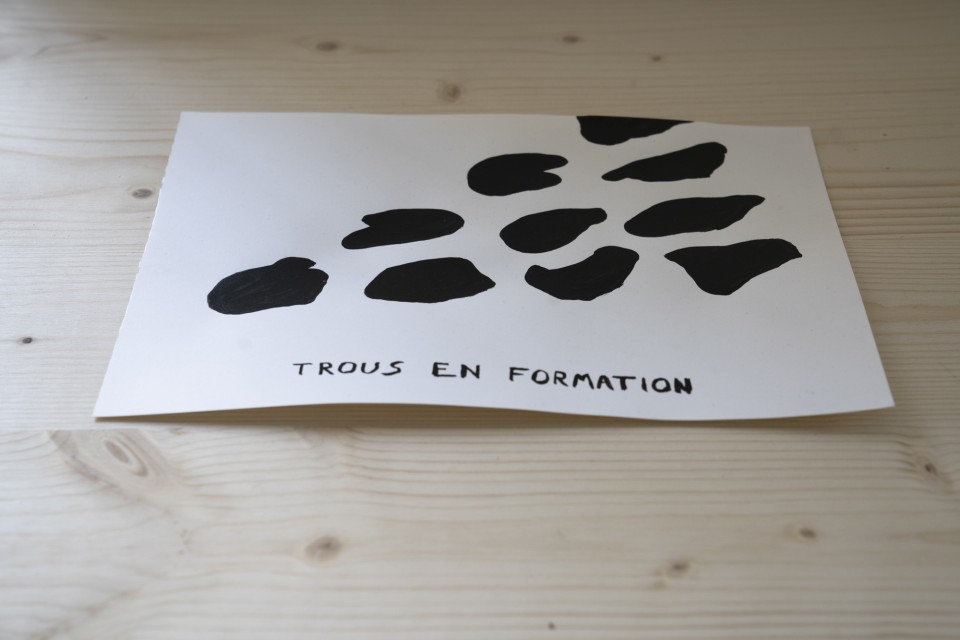 Il est question de gestes et de techniques empruntées — dans tous les sens des termes; prélèvements, coutures, récupérations, assemblages, chapardages, écritures ou encore affouages inter-espèces. Rien n’est exactement comme il faut ou à sa place. Pourtant…